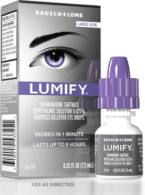 LUMIFY Redness Reliever Eye Drops provide fast, effective relief by visibly reducing eye redness in just 1 minute, helping your eyes appear brighter, whiter, and more refreshed. Created by Bausch + Lomb, LUMIFY uses a unique, FDA-approved formula with brimonidine tartrate to selectively target redness without the harsh ingredients found in many other over-the-counter drops.