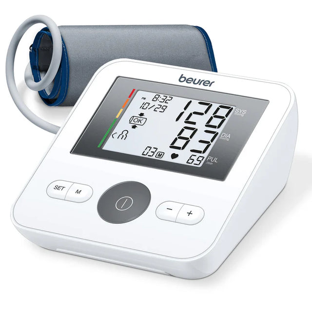 The Buerer Blood Pressure Monitor (BM27) is an ideal tool for tracking blood pressure and pulse at home. Its large, clear display and WHO color-coded risk indicator makes it simple to read and understand results. The arm blood pressure monitor features irregular heartbeat alerts and shows an "OK" sign on the screen to confirm correct cuff positioning, ensuring accurate measurements every time.