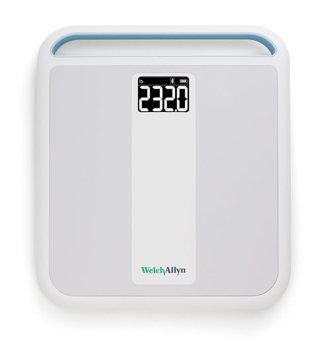 Built for accuracy and connectivity, the Welch Allyn Home Scale is an easy-to-use device that enables patients to capture accurate readings from the comfort of home and seamlessly transmit readings to caregivers. This Bluetooth enabled device features a wide-footprint, low profile design with a no-slip surface, sense-on technology, and a large LCD screen for easy reading. The scale’s sleek and durable design includes a built-in carrying handle, and it connects wirelessly to the free app using Bluetooth technology to monitor and track progress. Measurements can be displayed in either pounds or kilograms, and this scale has a maximum weight capacity of up to 441 lbs (200 kg).