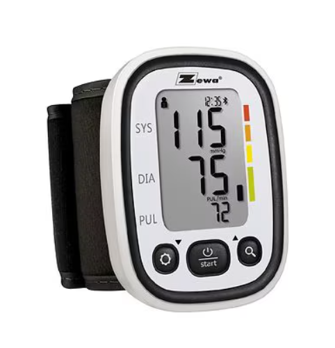 The Zewa Wrist Blood Pressure Monitor is a convenient, easy-to-use blood pressure monitor with Bluetooth capabilities. Designed for comfort and accuracy, it allows users to easily measure and track their blood pressure levels on the go. The Bluetooth feature enables seamless data transfer to compatible devices, making it effortless to track and share results for easy remote patient monitoring. It can store up to 60 previous readings for up to two users, and notifies users when an irregular heartbeat is detected.
