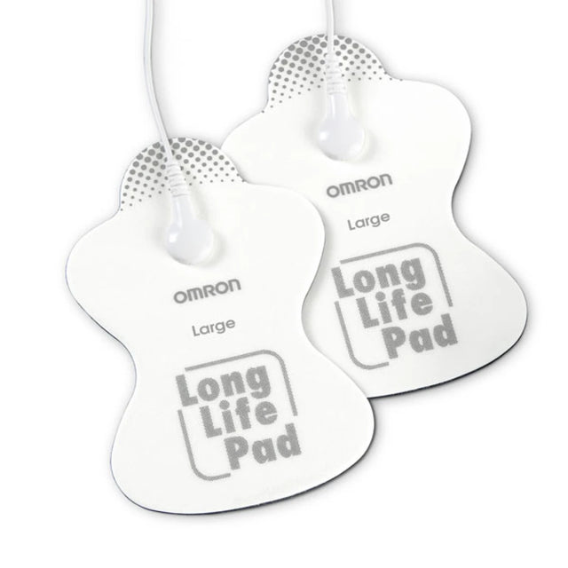 OMRON Large Long Life Pads (PMLLPAD-L) provide expanded coverage and comfortable stimulation for your TENS therapy. Designed exclusively for OMRON TENS devices, the electrode cords snap securely into place. With proper care, the pads may be reused up to 150 times; to refresh adhesion, rinse the sticky side with water and air dry. Store on the included pad holder in a cool, dry place to extend pad life.