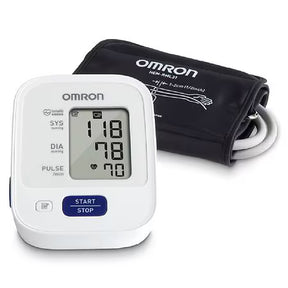 The Omron 3 Series Upper Arm Blood Pressure Monitor (BP7100) is designed for simple and reliable home blood pressure monitoring. With one-touch operation, the device quickly measures systolic and diastolic blood pressure along with pulse rate for easy daily tracking. Built-in memory stores up to 14 readings for a single user, while the wide-range upper arm cuff fits arm circumferences from 9"–17" (22–42 cm) for comfortable and accurate measurements.