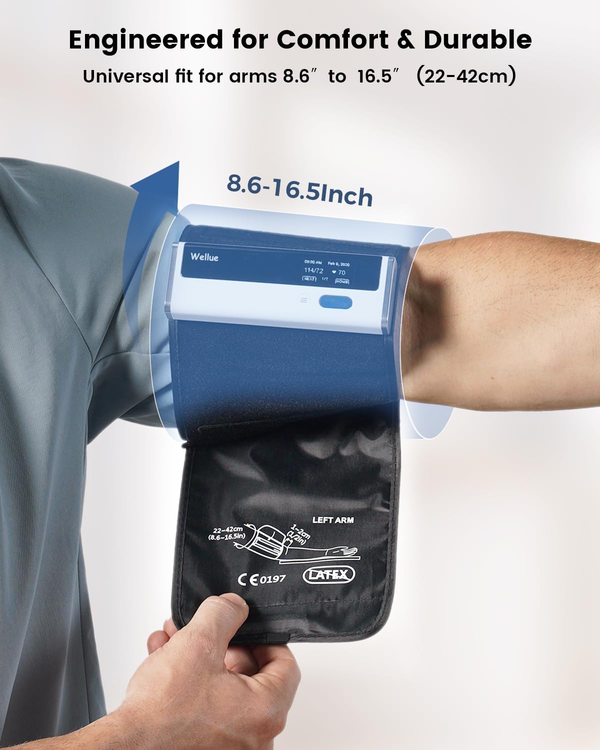 ✓ Wide cuff fits 8.7 to 16.5 inch adult arms