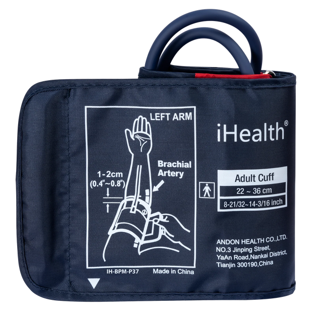 The iHealth Standard Cuff is a high-quality replacement accessory designed for the iHealth Track Blood Pressure Monitor (KN-550BT) and the iHealth Ease Wireless Monitor (BP3L). It offers a comfortable fit for most adults with arm circumferences ranging from 8.66" to 14.17" (22–36 cm), ensuring accurate and consistent blood pressure measurements.
